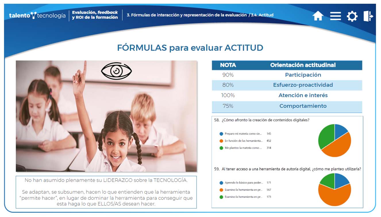 - Comprender los ejes de la evaluación y su particularización desde metodologías y fórmulas digitalizadas.
